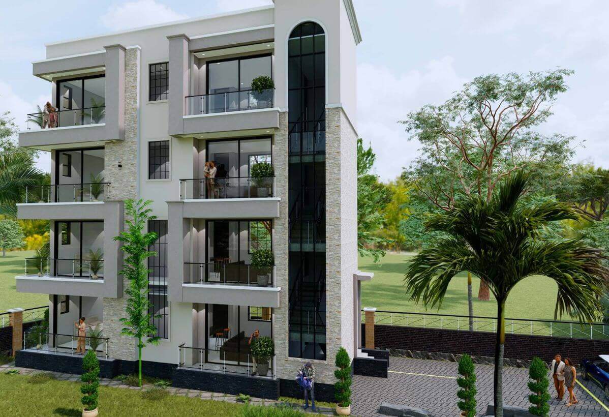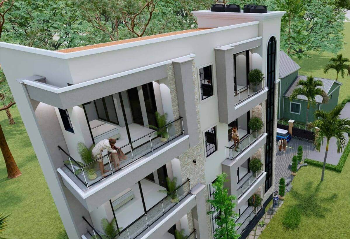 Apartments for sale in Muyenga Bukasa, Kampala. The block has four floors and each floor has a single bedroom with a lounge, kitchen, bathroom and balconies. The flat has a high demand and a high return on investment. Each unfurnished apartment in the same area is rented out at $500 per month. The block can be customised on demand to meet our client’s taste and preference. Construction takes six months, and your apartment will be