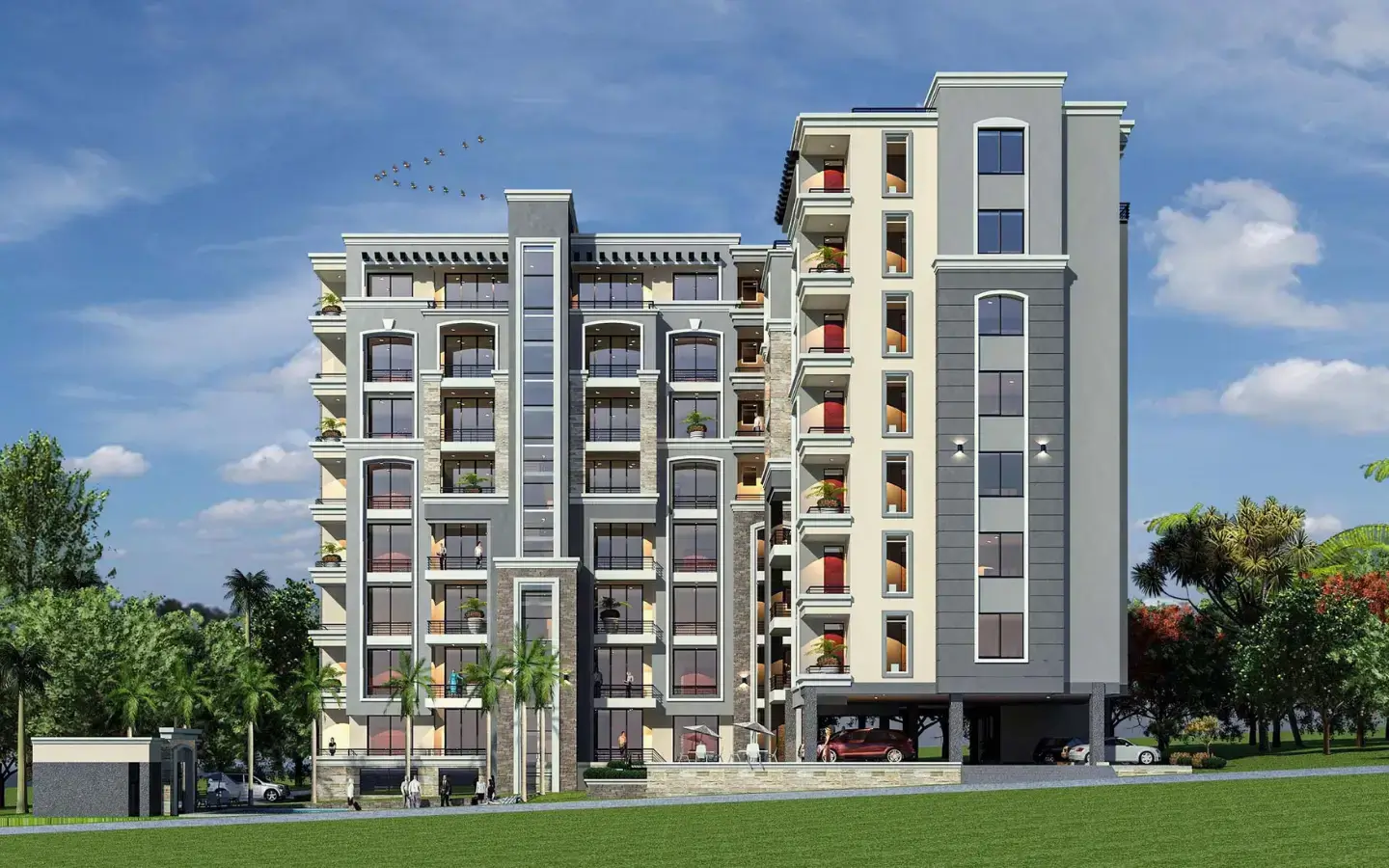 Enjoy luxurious urban living in these executive 3-bedroom apartment condominiums for sale in the prestigious Muyenga neighborhood of Kampala. These modern flats offer an unparalleled blend of style, comfort, and security. Each spacious residence boasts three well-appointed bedrooms, each with its own dedicated bathroom, ensuring privacy and convenience for the whole family. The thoughtfully designed layout includes a contemporary kitchen, perfect for culinary enthusiasts, a practical laundry room, and a comfortable dining area seamlessly flowing
